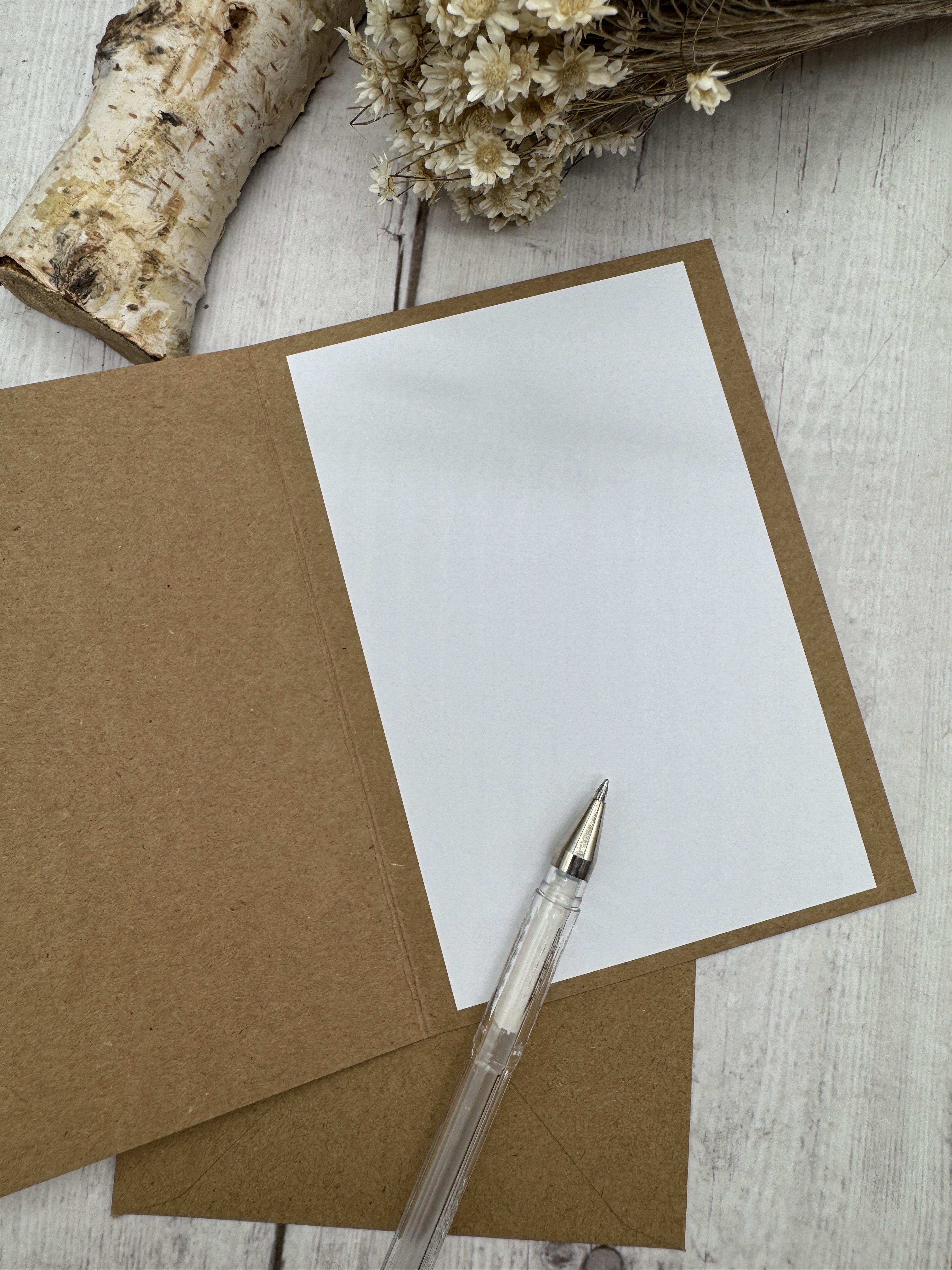 Die "Möhrchen"- Karte erhältst du im klassischen A6-Format in Krafkarton. Auf der Innenseite ist reichlich Platz für Deine Osterwünsche. Im passenden Umschlag ist die Karte sicher auf dem Weg zum Empfänger.