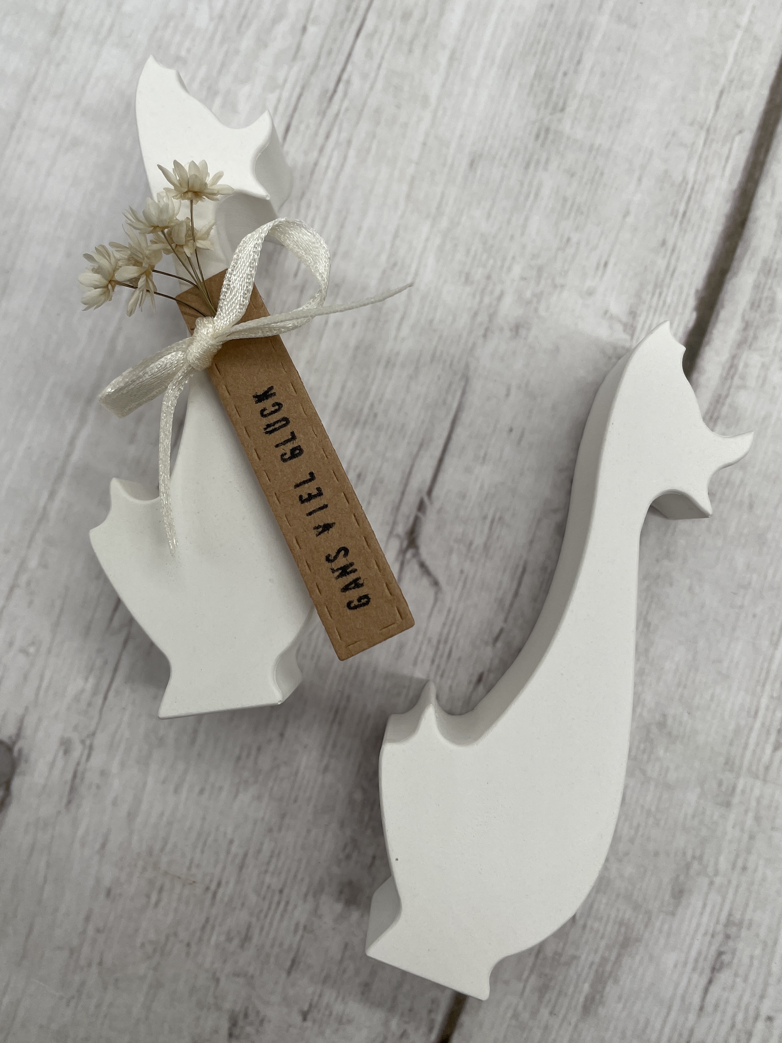 Die Gänschen werden im HiwwelWerk in Handarbeit gegossen und bearbeitet. Dabei lassen sich kleine Unregelmäßigkeiten wie Unebenheiten, Luftbläschen o.ä. nicht ausschließen und stellen keinen Qualitätsmangel dar. Farbabweichungen sind aufgrund der Bildschirmeinstellungen immer möglich.