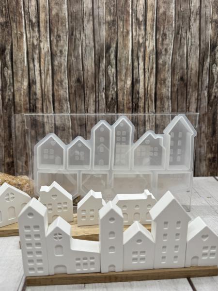 Mit dieser hochwertigen Gießform hast du im Handumdrehen eine kleine Stadt gezaubert. In einem Gießvorgang kannst du nämlich gleich 10 zauberhafte mini Häuser auf einmal ausgießen.