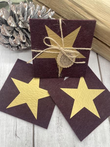 Der bordeaux farbene Filz ist mit dem gold glänzenden Stern ein richtiger Hingucker auf deiner Tafel.
